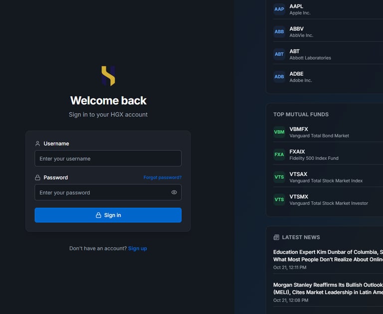 Join HGX Trading today and experience seamless access to U.S. stocks, mutual funds, and real-time financial news — all in one platform. Trade confidently, stay informed, and take control of your investments with a secure and intuitive app designed for modern investors.