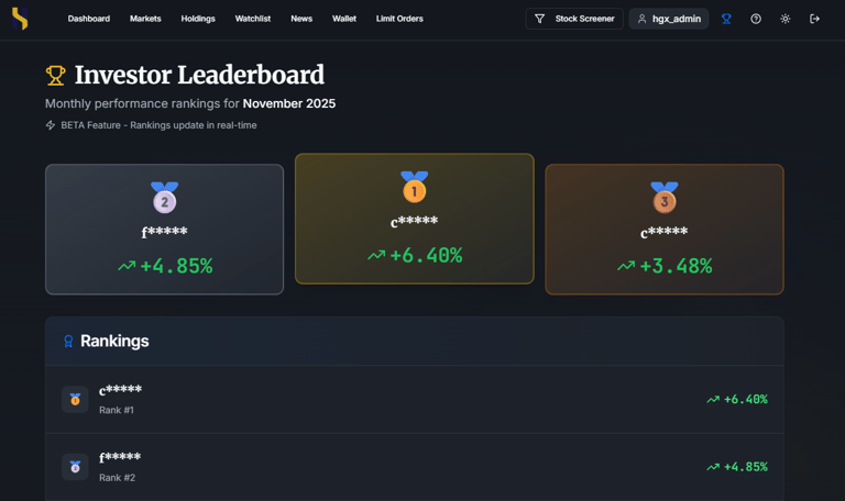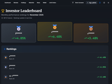 The Investor Leaderboard is a powerful addition because it turns learning and investing into an exciting, interactive experience. Instead of passively monitoring the markets, users are motivated to think strategically, refine their approaches, and push themselves to improve. The competitive element encourages smart decision-making while exposing users to different investment styles and strategies from top performers. It also builds a sense of community as participants challenge one another and celebrate wins together. With the added incentive of rewards and recognition, the leaderboard not only boosts engagement but also helps users grow their financial knowledge and confidence—making investing both educational and genuinely fun.
