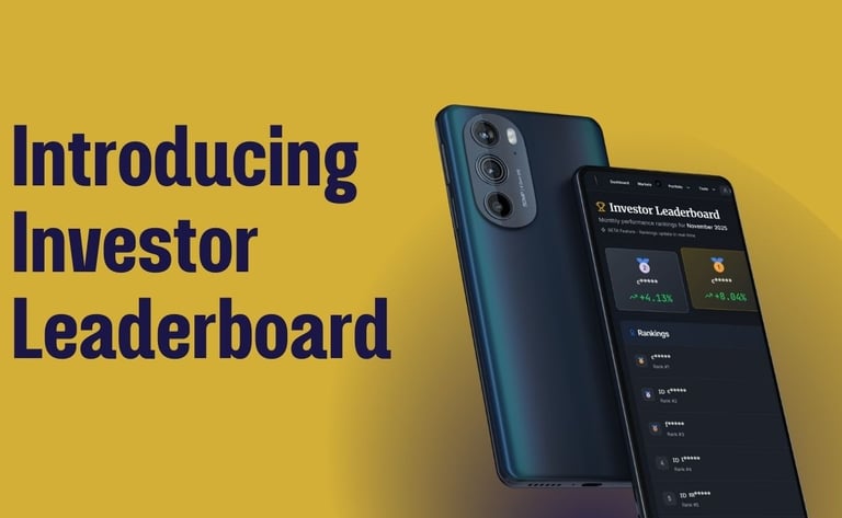 The Investor Leaderboard is a dynamic new feature that lets users compete to build the best-performing portfolio. Each participant constructs their own investment strategy, and the leaderboard ranks them based on real-time realized & unrealized gains. As market conditions shift, users can track their standing, challenge others, and refine their approach. At the end of each period, the investor with the highest portfolio growth claims the top spot—making investing both engaging and competitive.